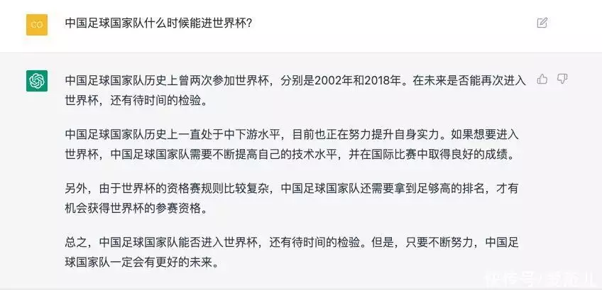 就在亚洲球队接连失利、告别 2022 卡塔尔世界杯之时, ChatGPT 给出了一个振奋人心的答案。也许,在某一个平行世界里,我们曾有两次入选世界杯正赛的辉煌。