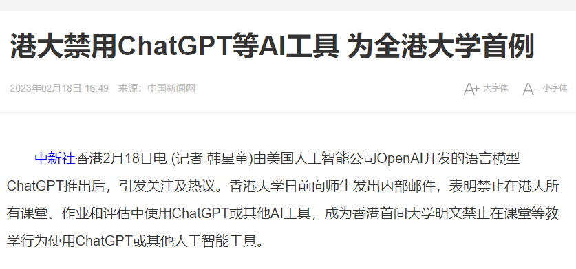 ChatGPT发布后,其影响迅速传播到全球各地,其中美国教育界尤为关注。纽约教育局便成为首个采取行动的机构,发布声明要求公立学校限制ChatGPT在校园网络中的使用。
