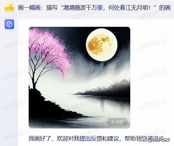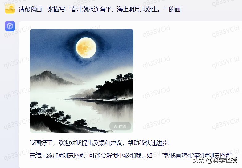 生成效果感觉还不错,但是没有明月共潮生的感觉,应该月亮在海上刚升起来的样子。