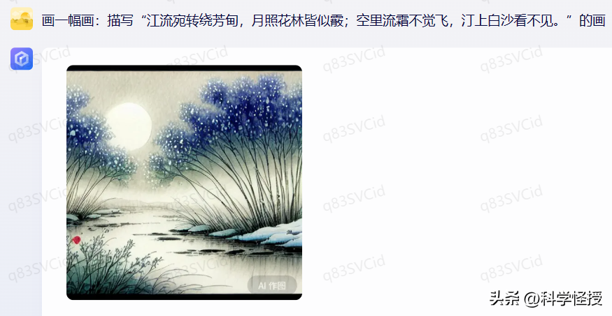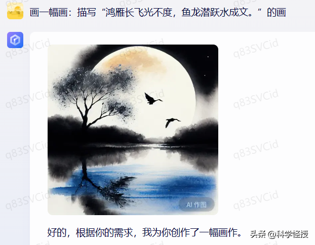 应该是能根据整首诗的意境来创作了,这点比较惊喜。试了生成五张图,没有一图是有鱼龙潜跃的感觉。