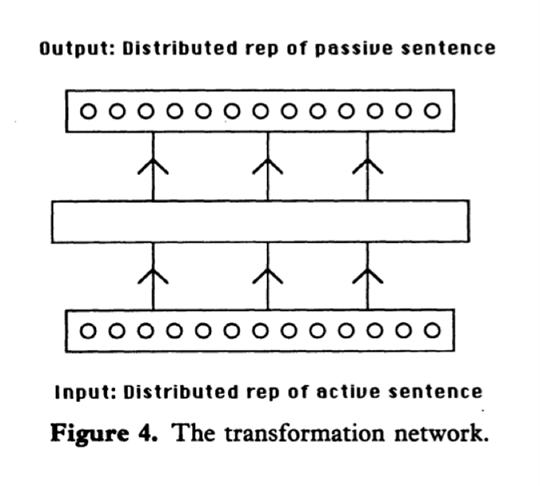 Transformation network: David J. Chalmers, Syntactic transformations on distributed representations. Connection