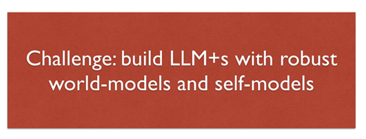 目前的LLM的世界模型肯定有很多局限性。标准模型往往看起来十分脆弱而不是稳健的,语言模型经常混淆和自相矛盾。当前的LLM似乎具有特别有限的自我模型:也就是说,他们关于自我处理和推理的模型很差。自我模型至少对自我意识至关重要,并且在某些观点(包括所谓的意识的高阶观点)中,它们对意识本身至关重要。这些都是特别重要的挑战。无论如何,我们可以再次将反对变成挑战:构建具有稳健世界模型和自我模型的扩展的语言模型。