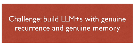 第三,对我们的研究项目来说也许是最重要的:存在循环的大型语言模型。就在几年前,语言模型还以循环的长短期记忆系统(LSTM)为中心。目前我了解到LSTM在某种程度上落后于transformer,但差距并不大。还有很多LLM是通过外部记忆组件以记忆和循环的形式构建的。很容易想象,循环可能会在未来的LLM中发挥越来越大的作用。再一次,这个反对意见基本上等同于一个挑战:建立拥有意识所需要的真正循环和真正记忆的LLM+。