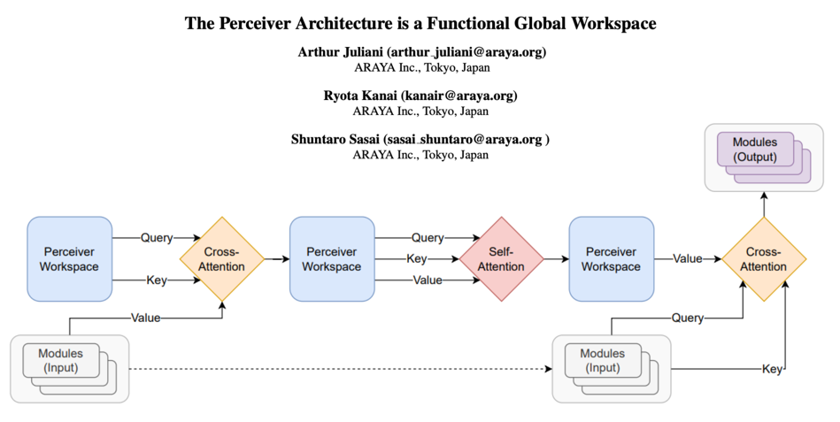 Arthur Juliani, Ryota Kanai, Shuntaro Sasai. The Perceiver Architecture is a Functional Global Workspace. Proceedings of the Annual Meeting of the Cognitive Science Society, vol. 44, 2021. https://escholarship.org/uc/item/2g55b9xx.