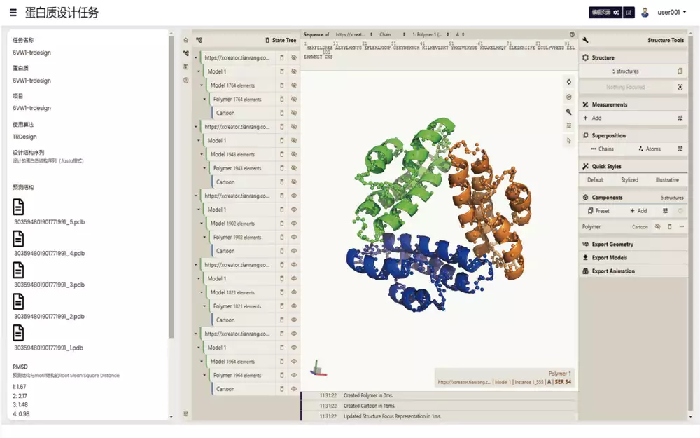 “我们还附加了一系列设计蛋白质的分析功能,可以对各类由算法自动生成的蛋白质结构进行打分,分数越高表示该自动生成的蛋白质结构的可实现性越高。”天壤XLab实验室负责人苗洪江博士介绍称。