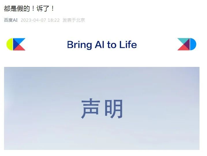 最近,百度在线网络技术(北京)有限公司通过其“百度AI”公众号发布了一则声明,明确表示目前并没有正式的“文心一言”应用程序。
