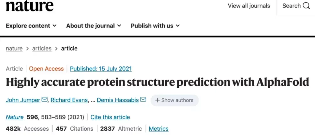 去年,谷歌旗下人工智能技术公司 DeepMind 宣布深度学习算法「Alphafold」破解了出现五十年之久的蛋白质分子折叠问题。2021年7月,AlphaFold 的论文正式发表在《Nature》杂志上。