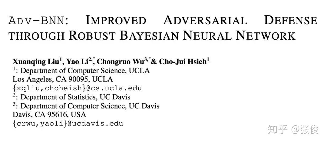 本文是 UCLA 和 UC Davis 发表于 ICLR 2019 的工作,论文提出了一种新的对抗防御方法,结合了贝叶斯神经网络(BNN)和对抗训练的优势,获得了不错的效果。其中,BNN 将每个权重参数视作一个随机变量,在预测时相当于一个无限个数的集成模型,实验证明只依靠 BNN 并不能做好防御,结合对抗训练才会提升模型的防御能力。
