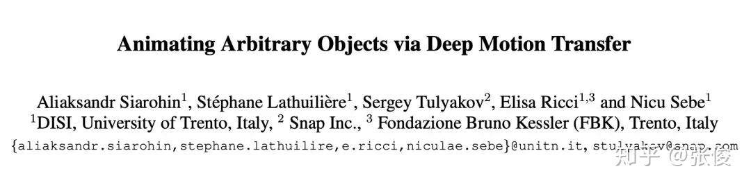 本文来自特伦托大学和Snap,论文研究的问题是将视频中的物体动作迁移到一张图片上,然后基于这张图片和指定动作生成一个新视频。
