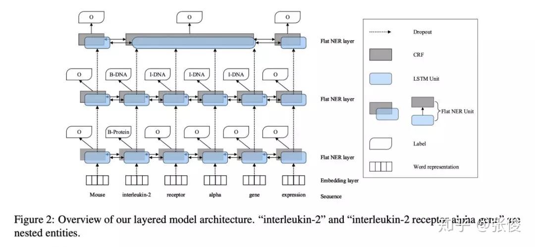 本文是曼彻斯特大学和丰田工业大学发表于 NAACL 2018 的工作,论文提出了一种由 flat NER layers 动态连续堆叠而成的神经网络模型,每个 flat NER layer 含有一个 BiLSTM 和 CRF 分别进行输入编码和标签预测,整体模型为 Layered-BiLSTM-CRF。