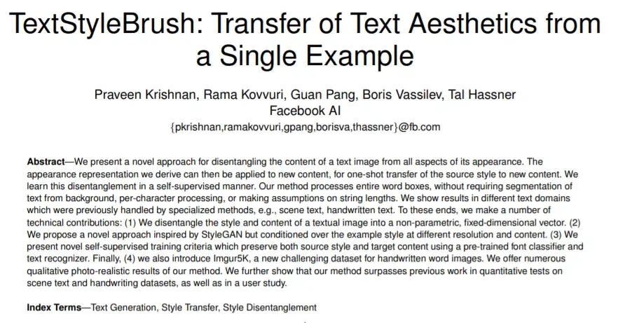 20、TextStyleBrush: Transfer of text aesthetics from a single example