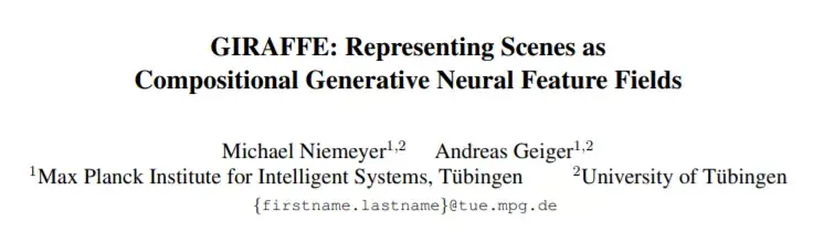 22、CVPR 2021最佳论文奖: GIRAFFE – Controllable Image Generation