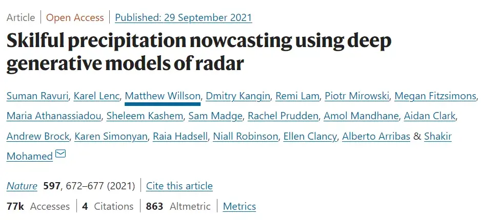 DeepMind 刚刚发布了一个生成模型,能够在 89% 的情况下优于广泛使用的临近预报方法,其准确性和实用性通过了 50 多位气象学家的评估!这个模型专注于预测未来 2 小时内的降水,实现效果出奇地好。