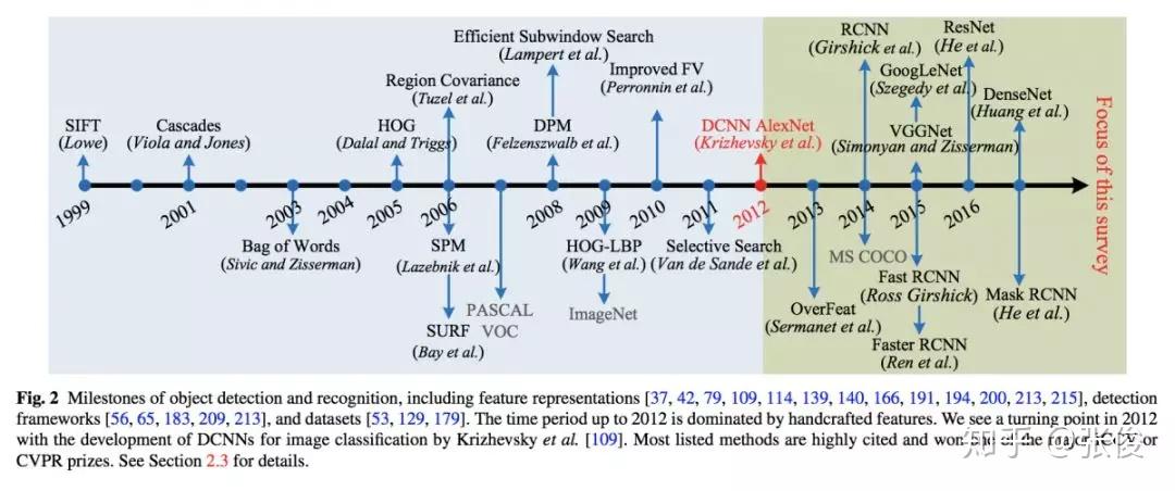 本文总结了最近 5 年来计算机视觉重要领域——目标识别的重要进展。内容非常详细,是目标识别领域这几年来少见的综述,文章指出了未来值得研究的几个方向,对研究者有很大的指导意义。该文章也已提交 IJCV 候审。