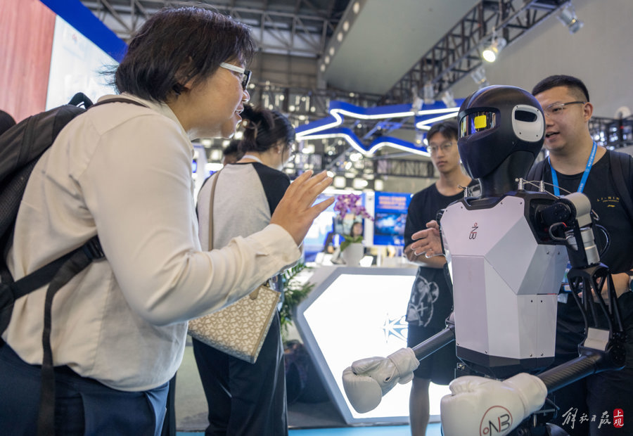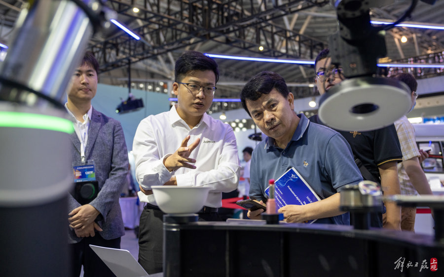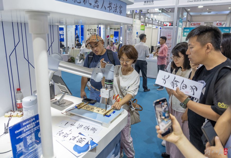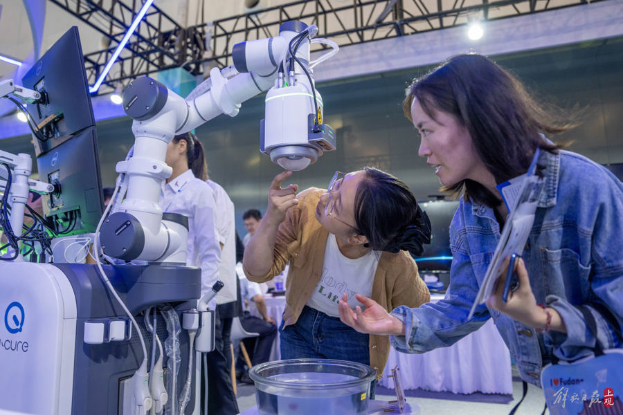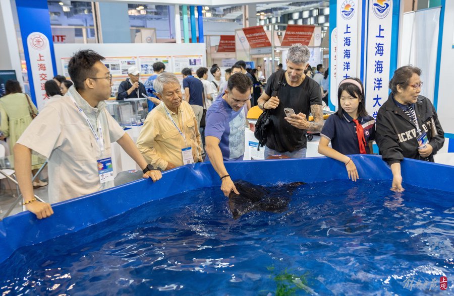 在高校展区,上海海洋大学的智能软体仿生鱼吸引了中外观众关注。