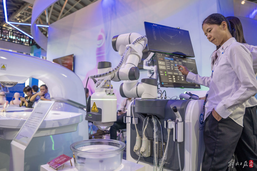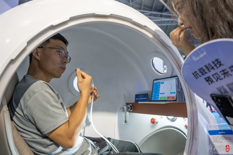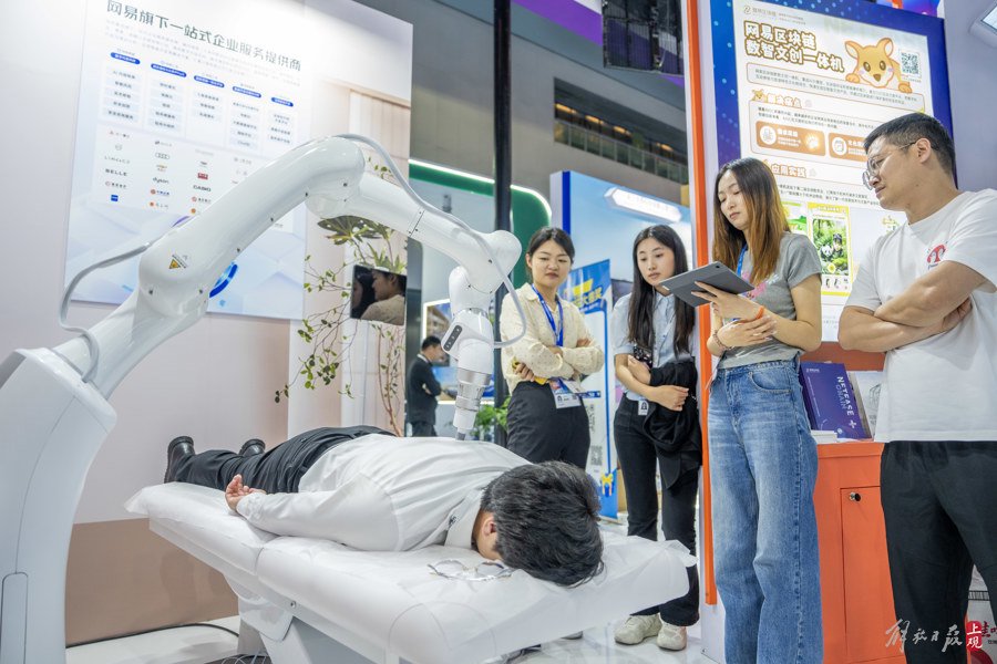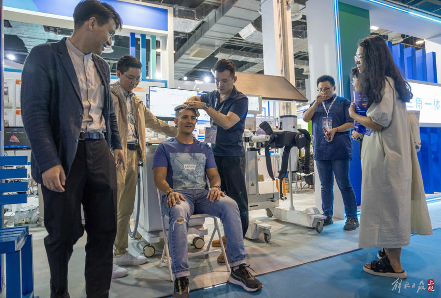 用于医疗康复的磁场刺激仪吸引了中外观众体验。