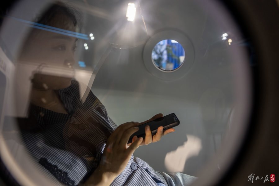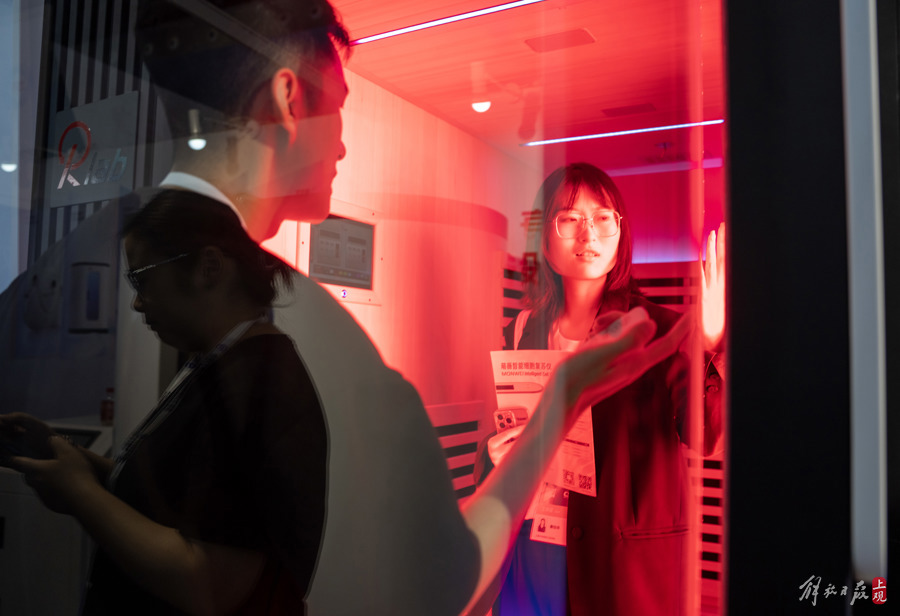 观众体验红光舱。据介绍,低能量红光光线可以起到促进人体血液循环,增加活氧与加速排毒的效果。