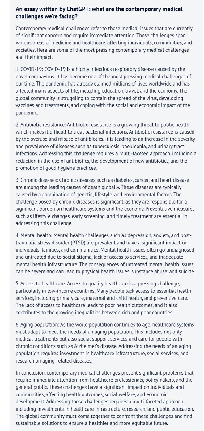*ChatGPT撰写的文章:我们面临的当代医学挑战是什么?