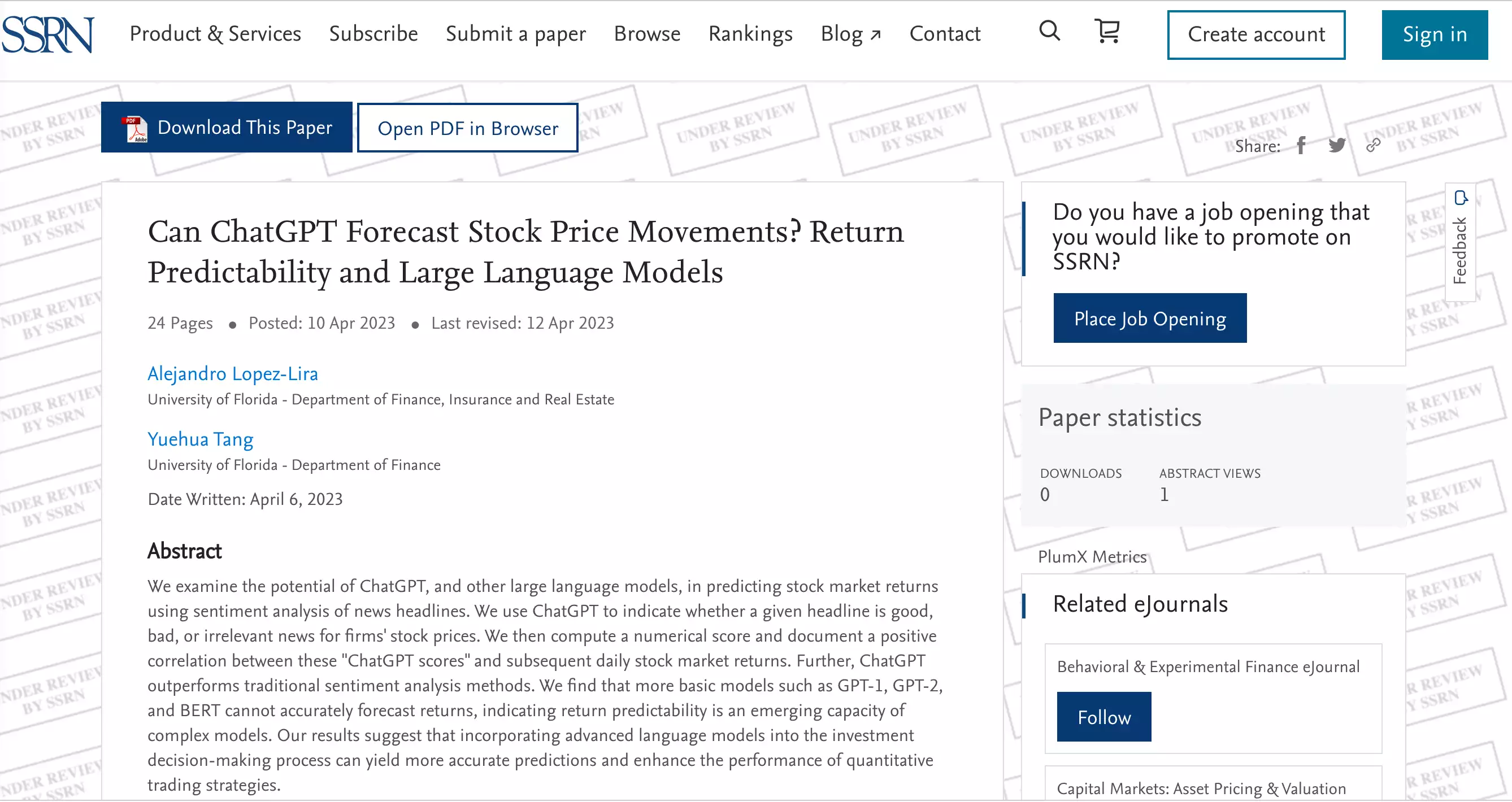 “简而言之,我们的研究证明了ChatGPT在预测股市回报方面的价值。”研究人员写道。“我们的研究结果表明,将高级语言模型纳入投资决策过程可以产生更准确的预测,并提高量化交易策略的表现。”