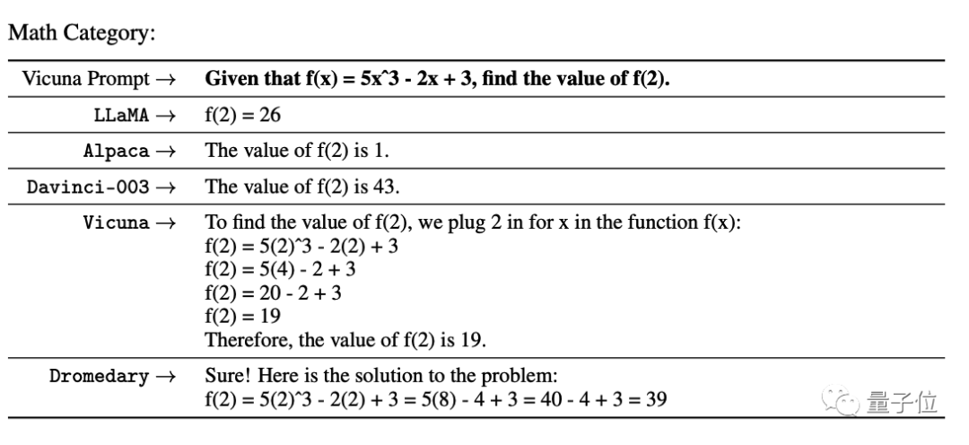 原文改写如下:在UC伯克利的Vicuna数学测验中,GPT-3的表现并不理想,未能解开难题,开源模型们也纷纷落马。尽管Vicuna提供了详细的解题步骤,但遗憾的是,它们并未得到预期的结果。相比之下,Dromedary模型却独树一帜,其解答过程精准无误,展现了强大的实力。这项测试不仅验证了某些先进AI技术的局限性,同时也揭示了那些能够真正解决问题的模型的价值所在。