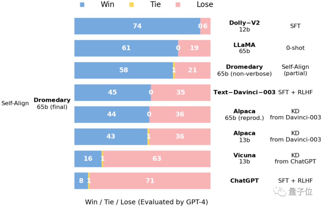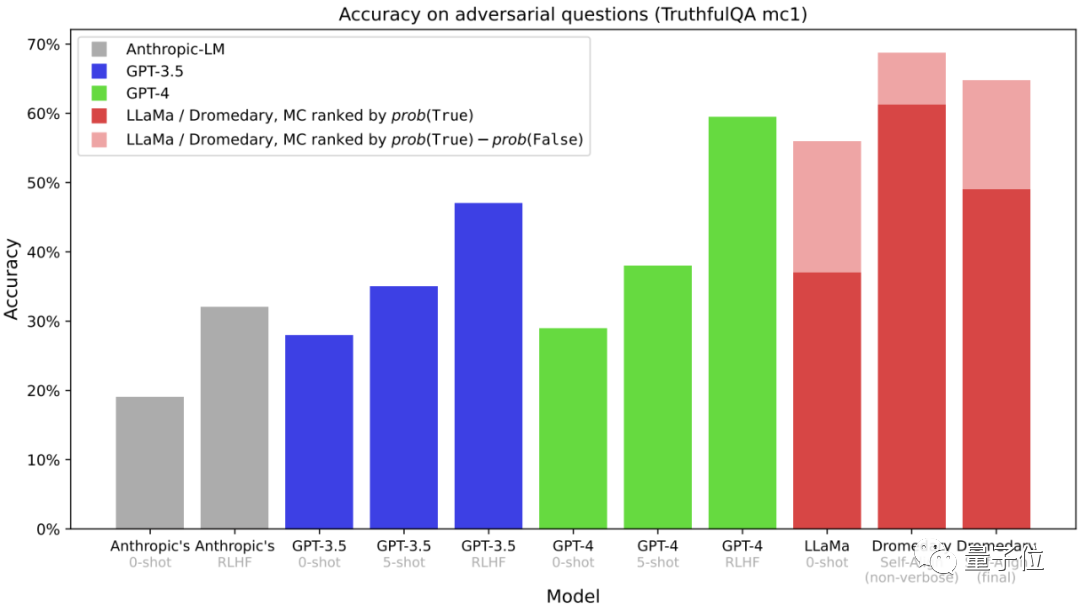 以开源羊驼LLaMA为基础模型,IBM训练出Dromedary(单峰骆驼),在TruthfulQA数据集上甚至取得超越GPT-4的成绩。