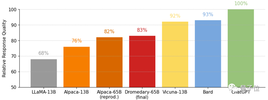 以及这是在Vicuna基准问题上得到的答案的相对质量,同样由GPT-4进行评估。