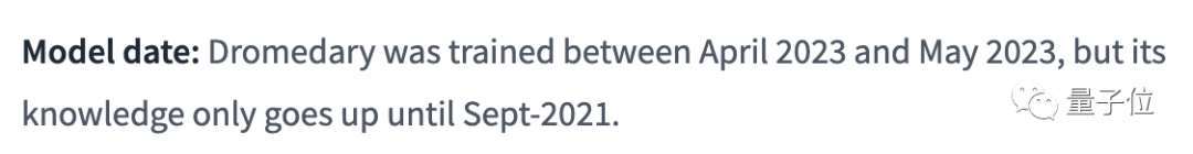 Dromedary基于transformer架构,以语言模型LLaMA-65b为基础,最新知识停留在2021年9月。