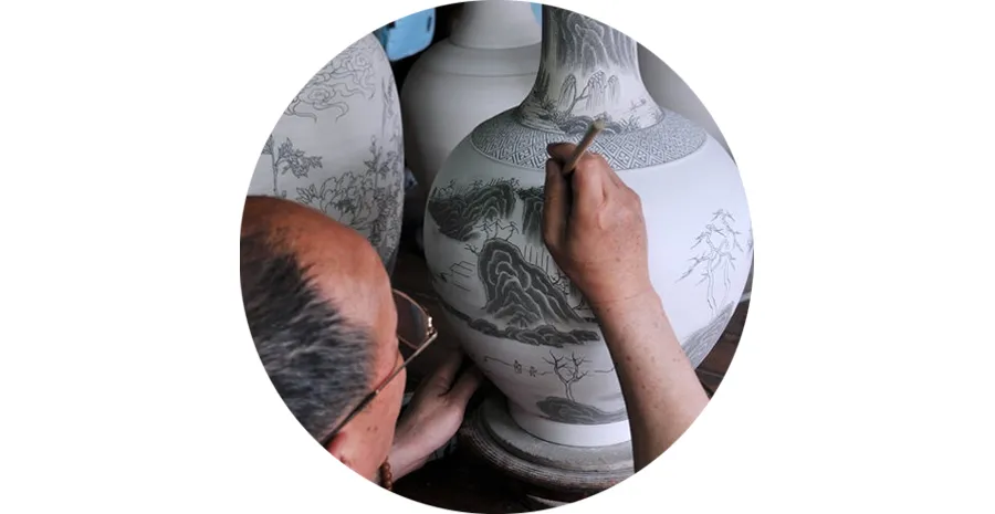 工艺上,青花瓷展现了三大特点:1.精选原料:基于对瓷器品质的追求,制作青花瓷常选用质地细腻的白瓷坯。