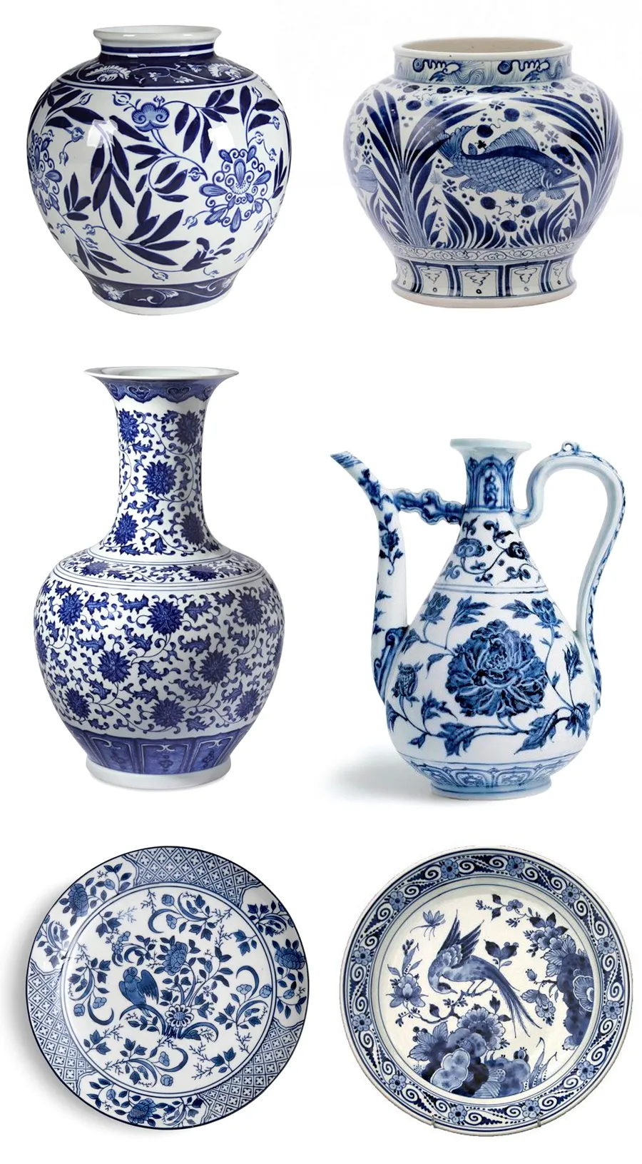 花纹设计上,青花瓷具有丰富的变化。常见的有: